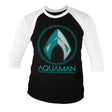 Aquaman - Distressed Shield Baseball 3/4 Sleeve Tee