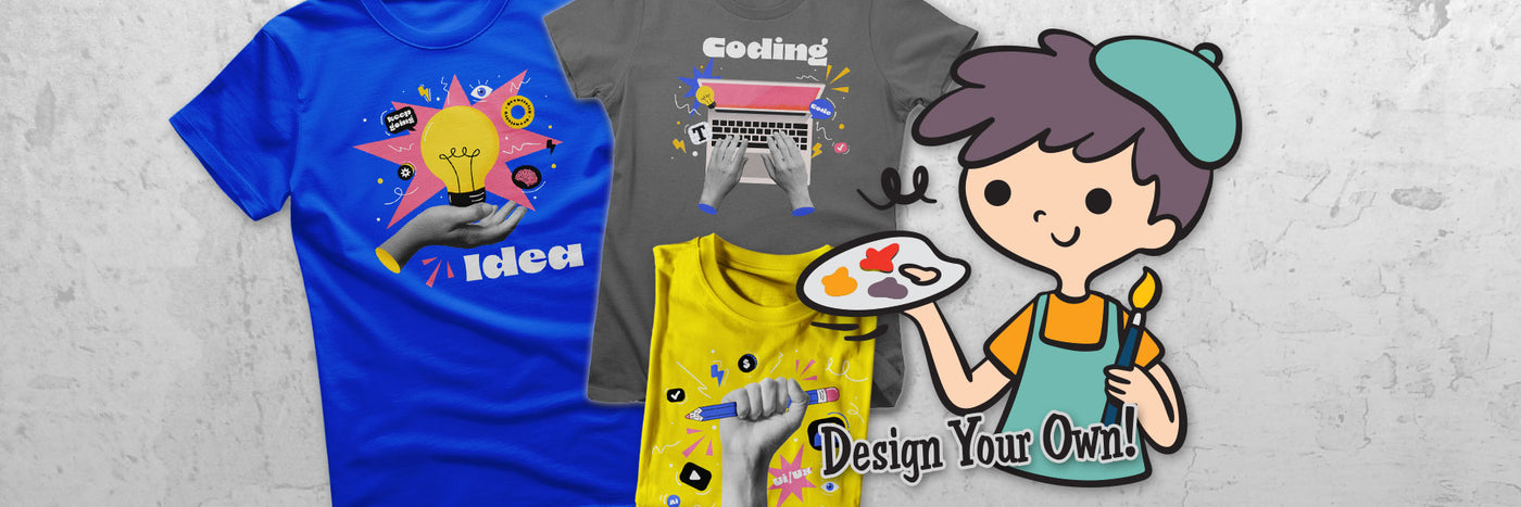 Med vår "Design Your Own"-plattform har du verktygen för att enkelt skapa personliga t-shirts och tröjor! Oavsett om du gör ett statement, ger bort en minnesvärd present eller bygger ditt varumärke, kommer dina designs att sticka ut.